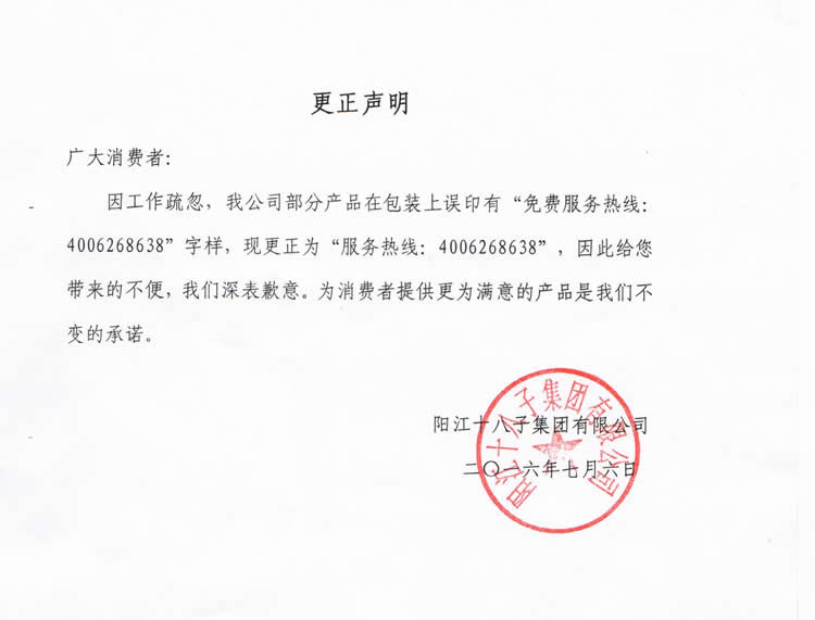 關于我司產品包裝信息更正聲明